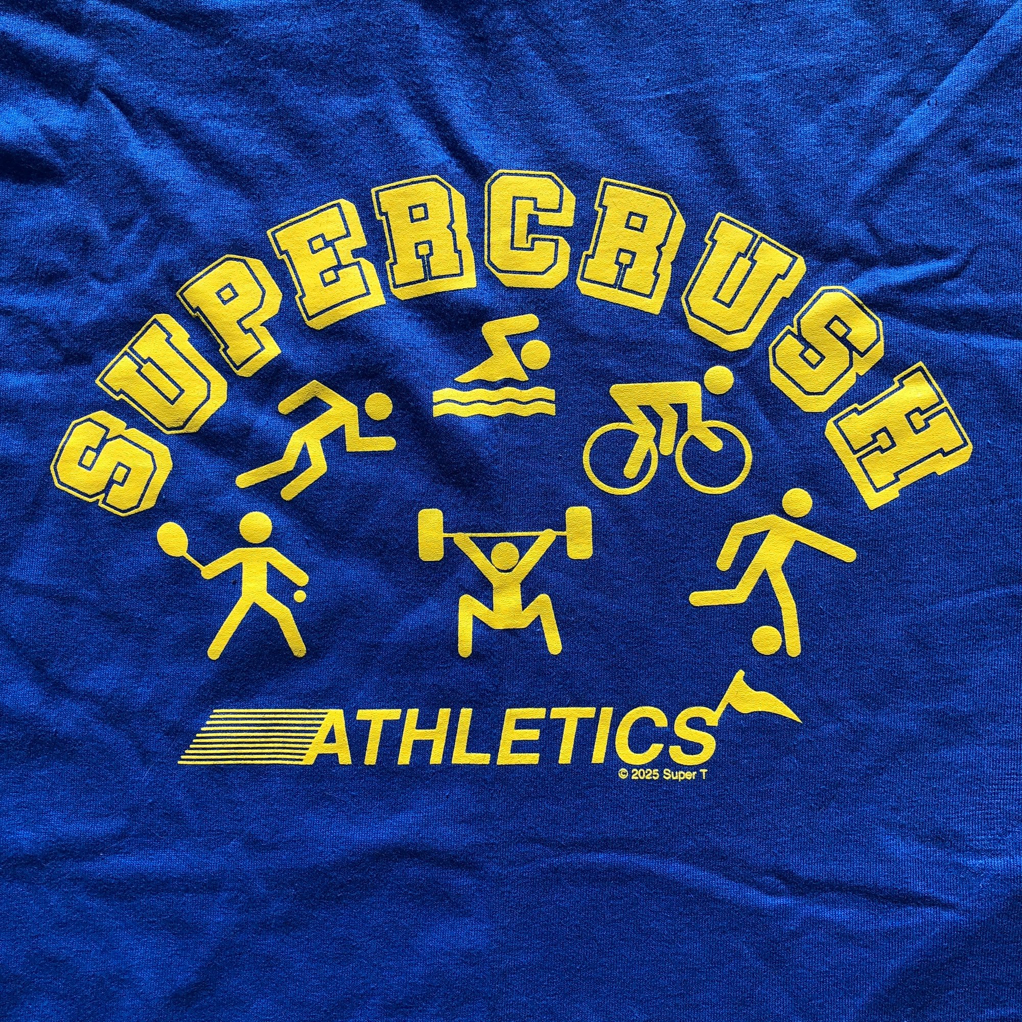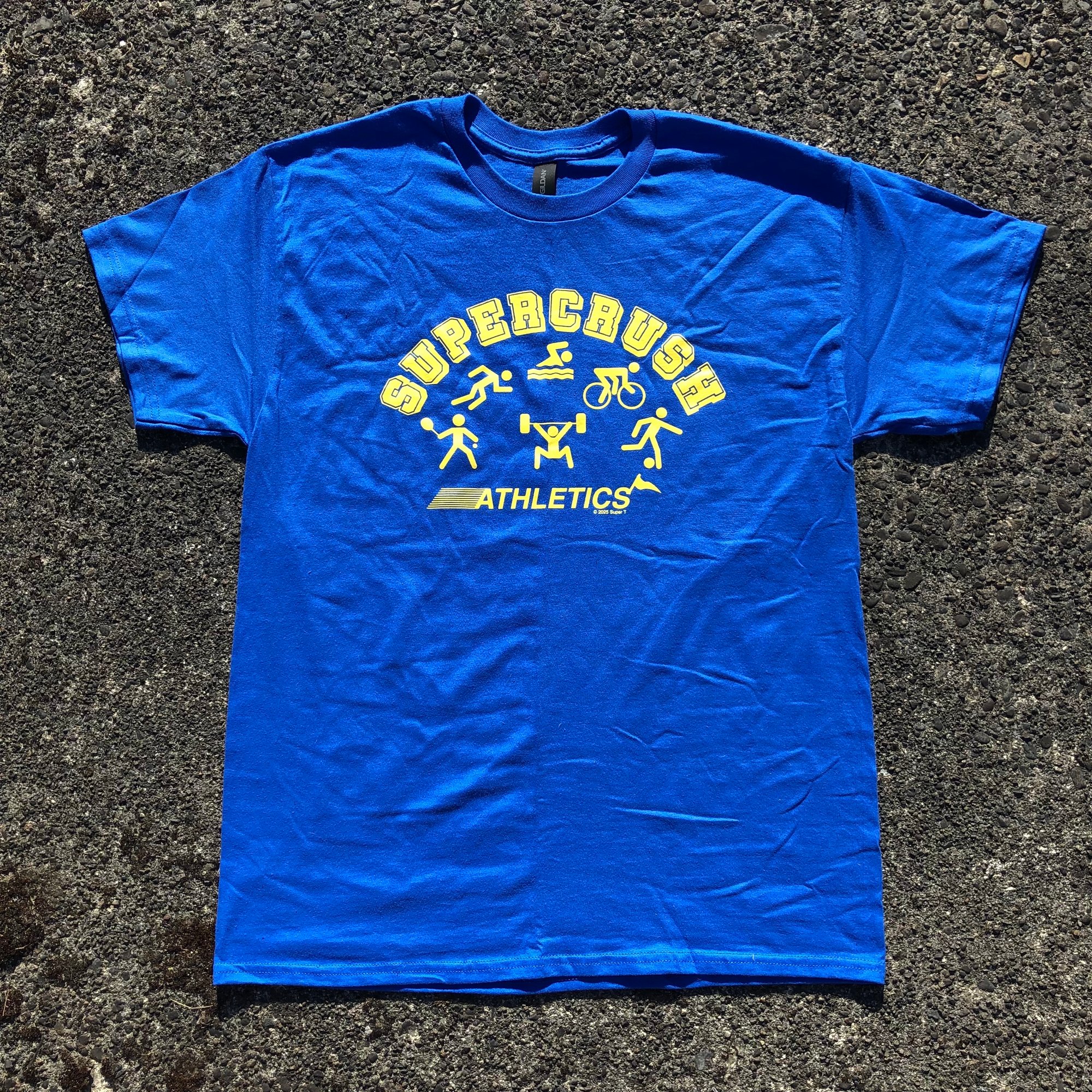 Yellow screen print on royal blue Gildan 'Ultra Cotton' T-shirts.